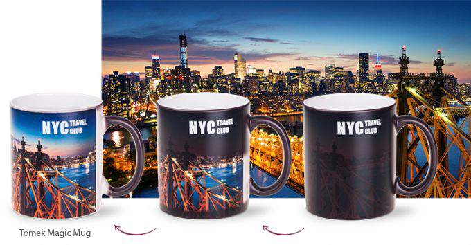 Powłoka „Magic” nie gwarantuje pełnego „ukrycia” nadruku. Stopien efektu transparentności zależny od koloru powłoki na kubku oraz specyfiki nadruku.